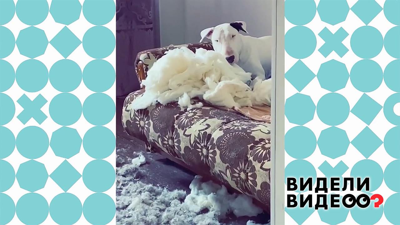 Бультерьер Они сгрыз подушки и одеяло с дивана. Неужели хозяева его не кормили?