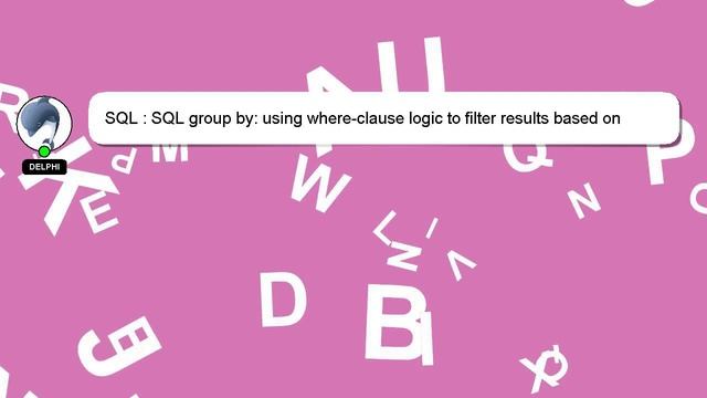 SQL : SQL group by: using where-clause logic to filter results based on aggregate functions To Access My Live Chat Page, On Google, Search for "hows tech developer connect" I promised to share a hidden feature with you, and here it is. This is a YouTube's feature which works on Desktop. First, Make sure the video is currently in playing mode. Then, type the letters 'awesome' on your keyboard as the next step. It will change your youtube progress bar into a flashing rainbow. Allow me to introduce myself briefly, Nice to meet you, I am Delphi. I am at your disposal to help you with any questions you have. SQL : SQL group by: using where-clause logic to filter results based on aggregate functions Please feel free to comment or chat with me for more detailed information. Your input is valuable, so please comment below if you have an answer or any insights to the answer. Your answer will be appreciated and acknowledged with a 'heart' from me. aggregate SQL on : functions group by: to SQL using filter logic where-clause based results