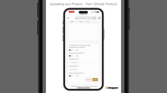 This video explains and shows how to upload simple product on Ushoppen.