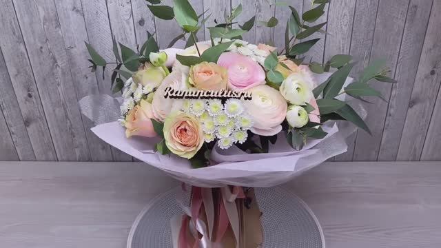 Букет из розовых ранункулюсов и пионовидных роз с эвкалиптом. Букеты и композиции из ранункулюсовhttps://ranunculus.ru/catalog/ranunkulyusy/ Сайт https://ranunculus.ru