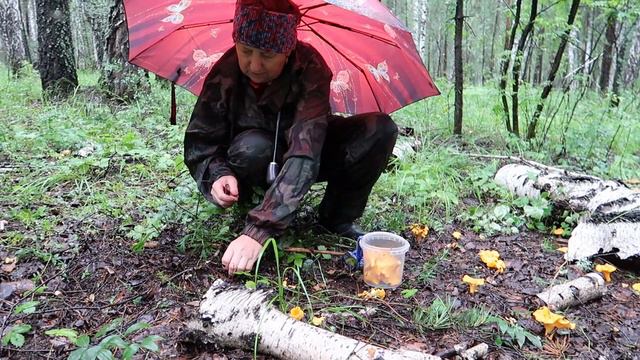 Льет дождь, но нам не страшно. Грибы на каждой поляне.