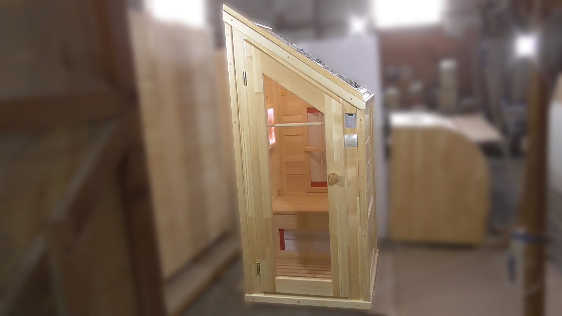 Видеообзор кедровой одноместной ик-сауны с керамическими нагревателями и крышей под мансарду
