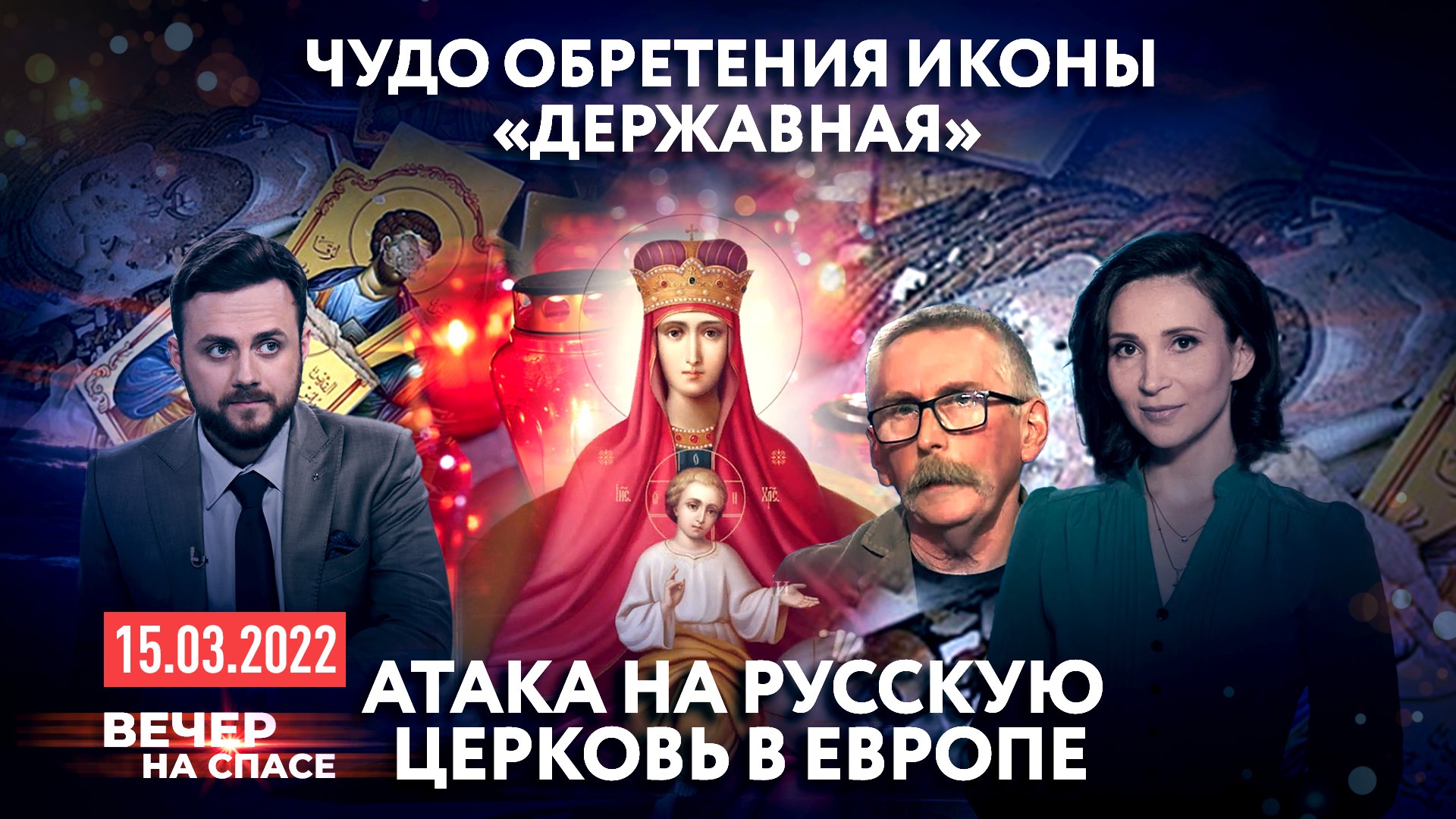 ⚡️В выпуске 15.03.22: ? Украинского писателя Яна Таксюра обвиняют в госизмене, в Севастополе зажгли свечи в память о погибших в Донецке, в Иерусалиме началась масштабная реставрация храма Гроба Господня. Расскажем о главных событиях дня. ? Как изменилось человечество после братоубийства? Прочтем и разберем Писание дня с игуменом Лукой (Степановым). ? Икона Божией Матери «Державная». Игорь Петровский об удивительной истории образа. ? Дорога памяти. Тысяча четыреста восемнадцать шагов к Победе. Очередной выпуск нашей специальной рубрики о подвиге народа-победителя. ? Апокалипсис вслух. Шестую главу «Откровения святого Иоанна Богослова» прочтет известный актер театра и кино Дмитрий Певцов. ? Церковь под ударом. Кто нападает на русские храмы? Обсудим с гостями в студии трудности, с которыми сталкиваются православные христиане в Европе. ЭТО ВЕЧЕР НА СПАСЕ. ГЛАВНОЕ НА СЕГОДНЯ И… ВСЕГДА.