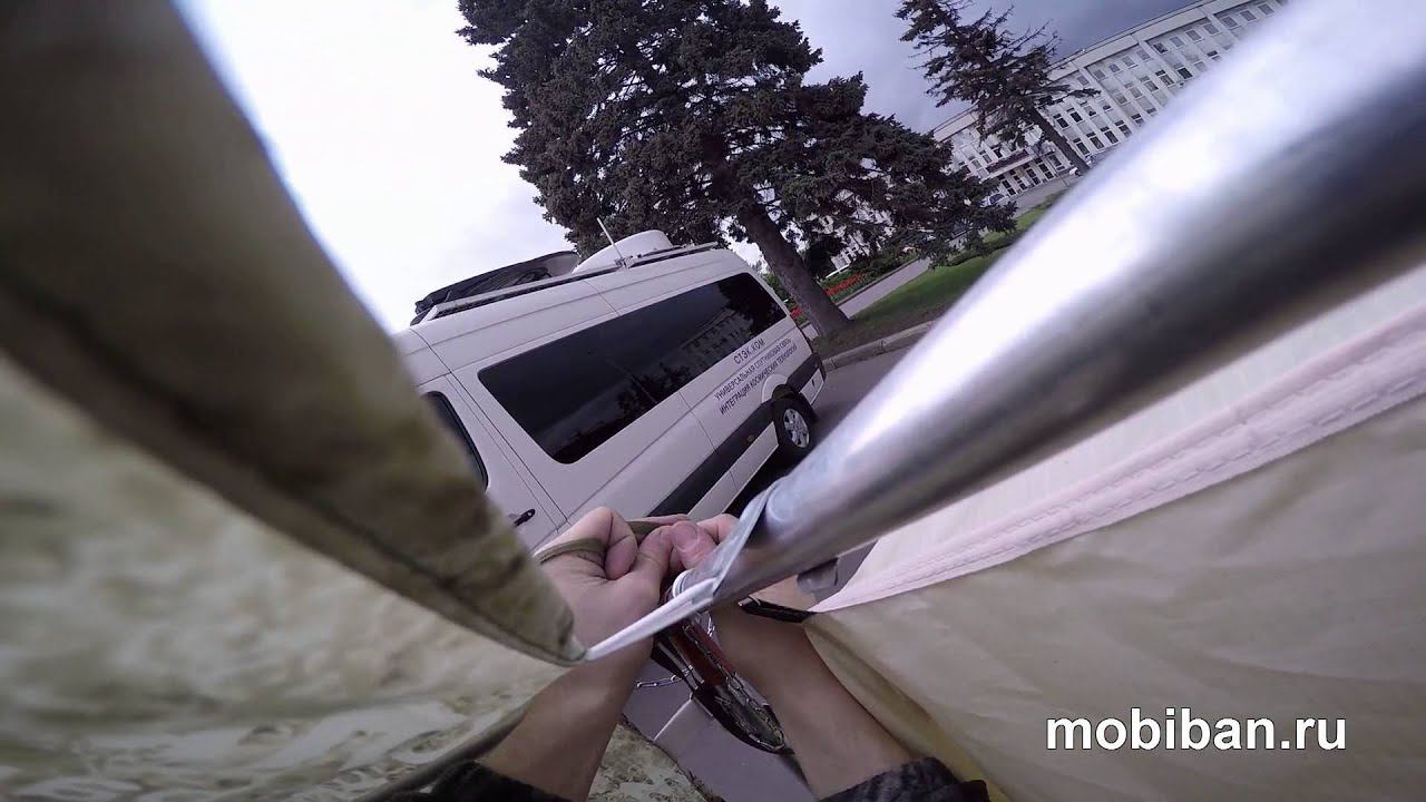 http://mobiban.ru/r-75.php Мобиба Р-75. Процесс сборки. Самая грандиозная палатка от Мобиба - новинка 2015 г. - палатка Р-75. Или Роснар Р-75 (ООО "Роснар" - дочерняя компания Мобиба). Жилая площадь - 33 кв. метра. Установка - 40 минут силами двух людей. Здесь на видео сборка тремя людьми в спокойном режиме с "перекурами". Мне показалось, что при определённой сноровке, сборка доступна для одного человека! Габариты изделия в собранном виде 6,82 x 4,7 x 2,47 м. (длина/ширина/высота).