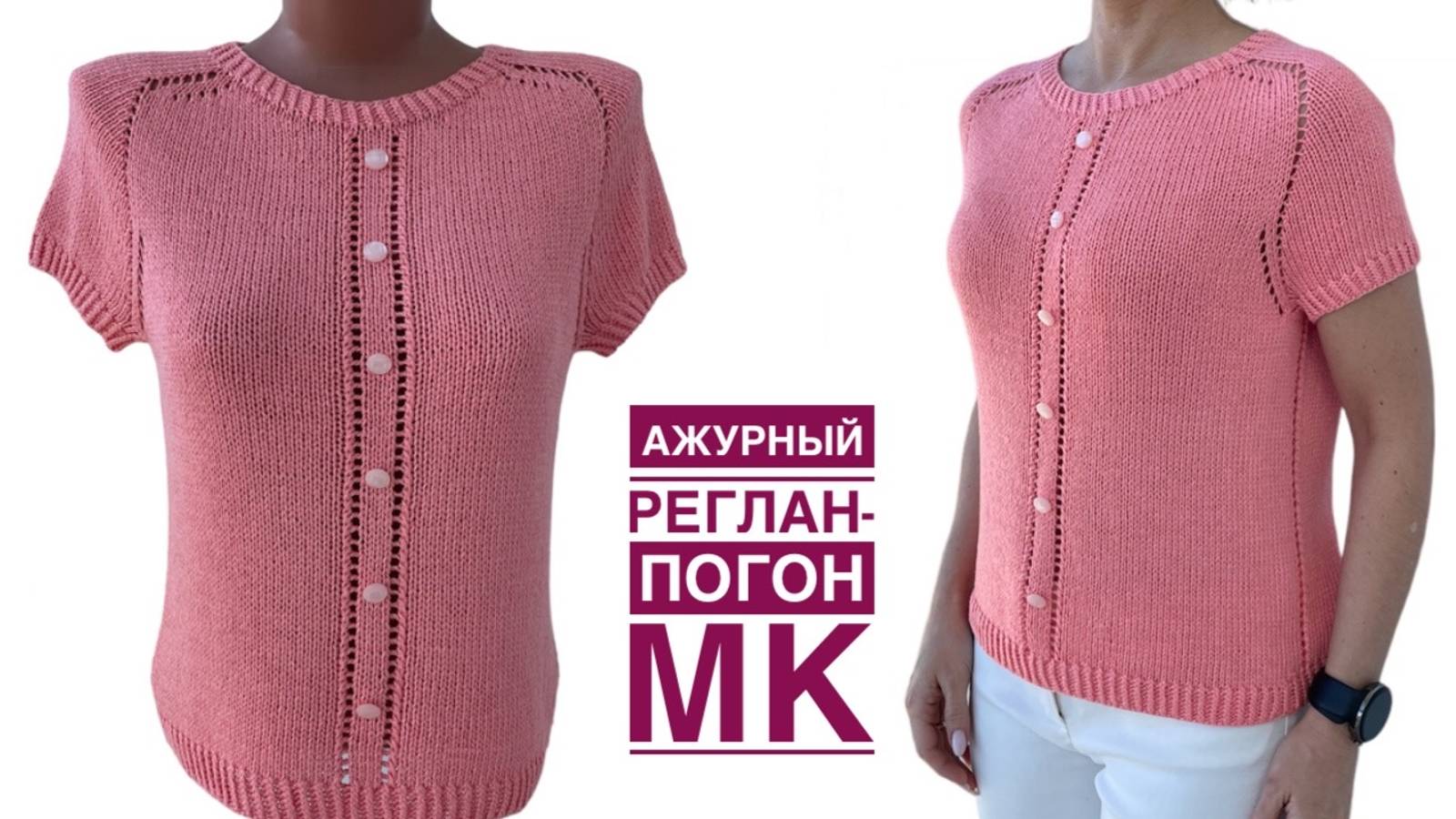 АЖУРНЫЙ РЕГЛАН-ПОГОН. Базовая футболка с удобной посадкой. Подробный МК.