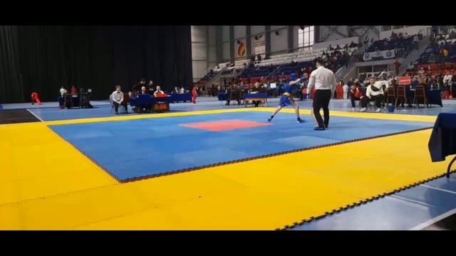 ушу-саньда. Первенство ПФО-2026. г.Пермь. синий Харитонов Денис 11 лет.до 45 кг. юноши 12-13 лет