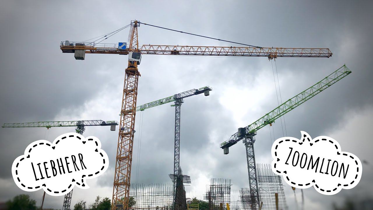 ZOOMLION и LIEBHERR | Башенные краны в работе. Стройка. Амурский парк