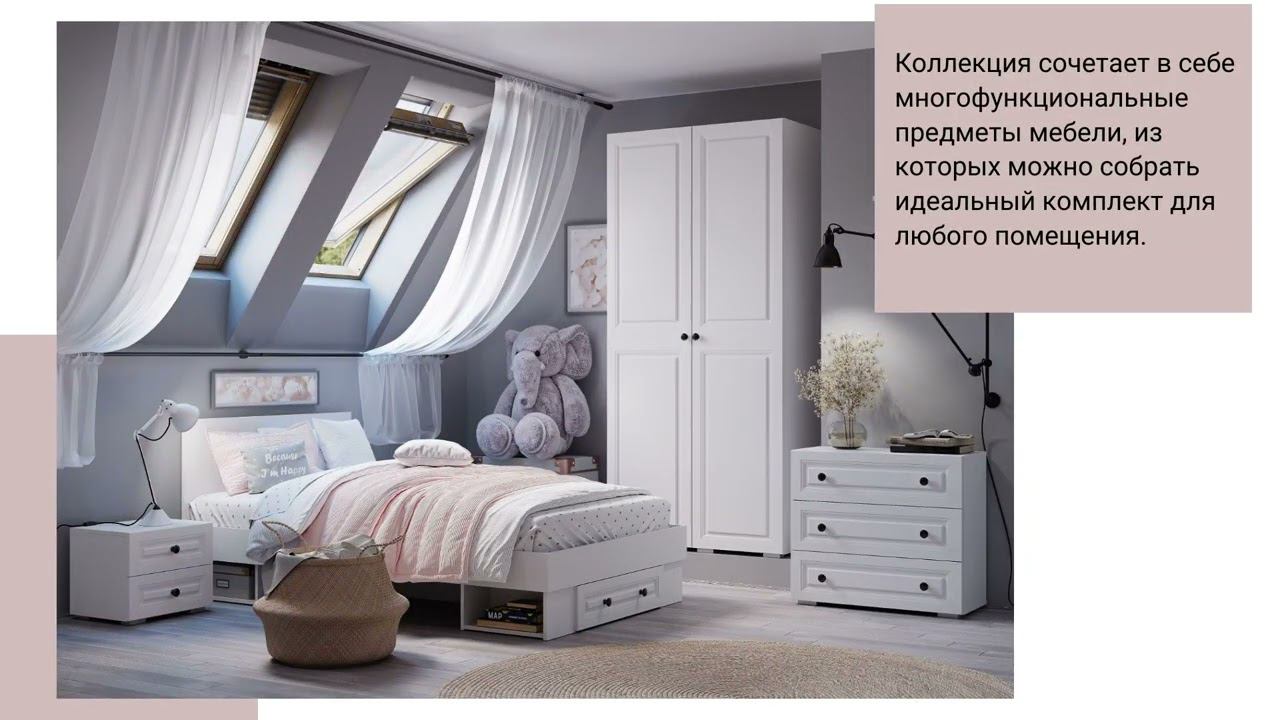 Коллекция «Софт» — это оптимальное сочетание стильного дизайна и функциональности. В коллекции представлена вся необходимая мебель для обустройства уютного современного дома. Разнообразные модели позволят обставить пространство максимально комфортно. Белый цвет дополнит строгий интерьер или станет отличным фоном для ярких акцентов в интерьере.В композицию входят: комод, кровать, полка, тумба, шкаф, пенал.