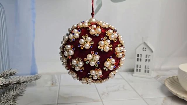 Декоративный ёлочный шар ЖЕМЧУЖНЫЙ ВАЛЬС, текстиль, красный, 10 см, 6500787A400