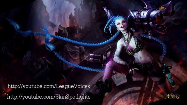 This is League of Legends Champion Jinx's voice in English All sounds are taken from the ingame voice over sound banks, Champion Selection voice is not in the video. Splash art is taken from in game as well. ------------------------------------------------------------------------------ Haven't got a LoL Account? Sign Up Here: http://signup.leagueoflegends.com/?ref=4df8eae193c2f972338226