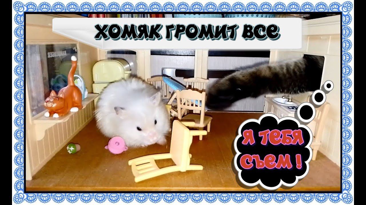 Хомяк громит столовую, кошка недовольна очень............