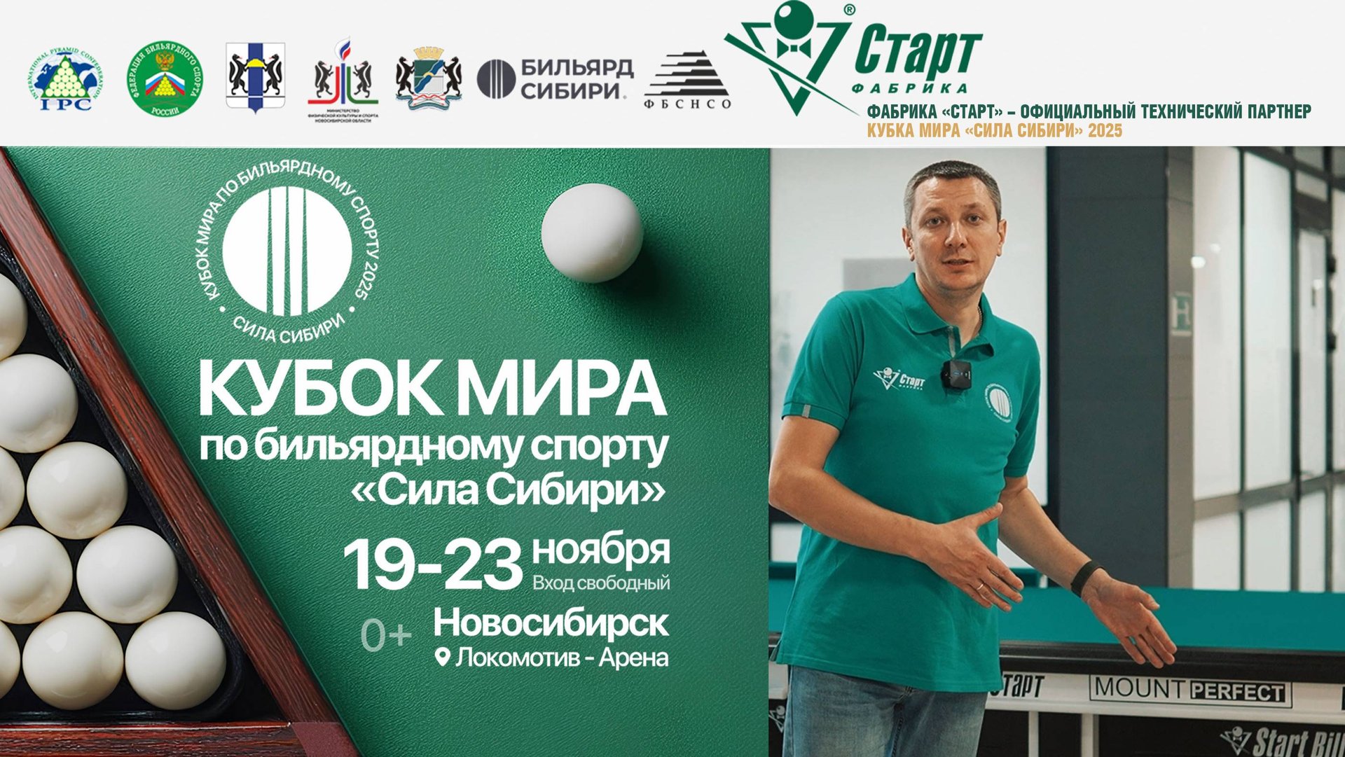 Ноябрь в Новосибирске станет месяцем бильярда, и его эпицентр будет именно здесь, в Локомотив-Арене, где пройдет Кубок Мира по бильярдному спорту «Сила Сибири». Мы начинаем подготовку второго этапа погружения в мир бильярда в рамках проведения Кубка Мира «Сила Сибири» в ноябре! Здесь в Локомотив-Арене будет подготовлена специальная интерактивная зона, на которой каждый гость площадки сможет ощутить атмосферу профессионального бильярдного спорта в преддверии главных матчей Кубка Мира. Сердцем этой зоны, как и самого турнира, станет флагманский стол — «Версаль III». На этом профессиональном оборудовании будут биться за звание звезды мирового бильярда. И у вас есть уникальный шанс не просто увидеть, а опробовать их лично — абсолютно бесплатно! Мы даем вам возможность первыми прикоснуться к легенде. Локомотив-Арена — современная и мощная спортивная площадка, идеально подходящая для события такого масштаба. На интерактивной зоне вам расскажут о всех нюансах бильярдного спорта и ответят на ваши вопросы. Мастер-классы с профессиональным спортсменом - главная фишка зоны. Здесь каждый сможет открыть для себя бильярд как новое хобби, отточить навыки и получить ценные советы по техник! Миссия Фабрики «Старт» - популяризация бильярдного спорта в России и за ее пределами. И главной наградой за наш труд - станет ваш визит на интерактивную зону и сам Кубок Мира в Локомотив-Арене! Ждем каждого с 22 октября в Локомотив-Арене. Войдите в мир бильярда вместе с ведущим российским производителем бильярдного оборудования Фабрикой «Старт»!