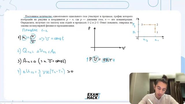 Постоянное количество одноатомного идеального газа участвует в процессе, график которого - №29139