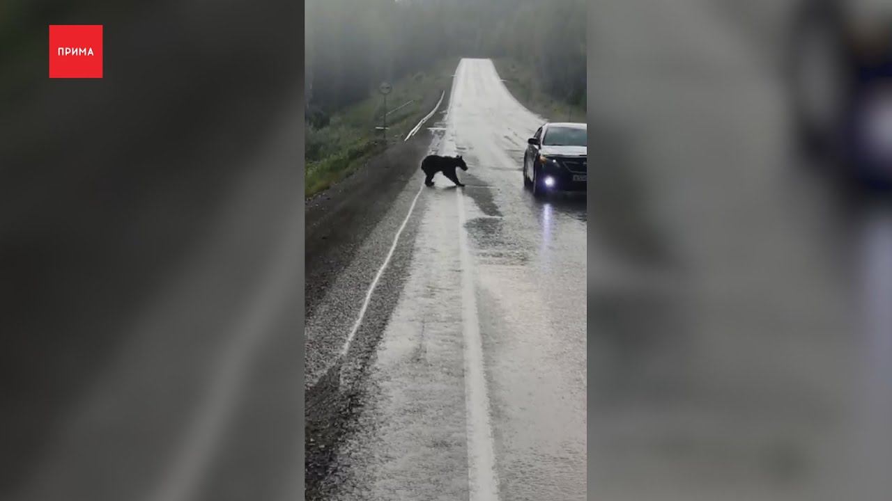 Медведь-попрошайка вышел на трассу возле парка «Ергаки»
