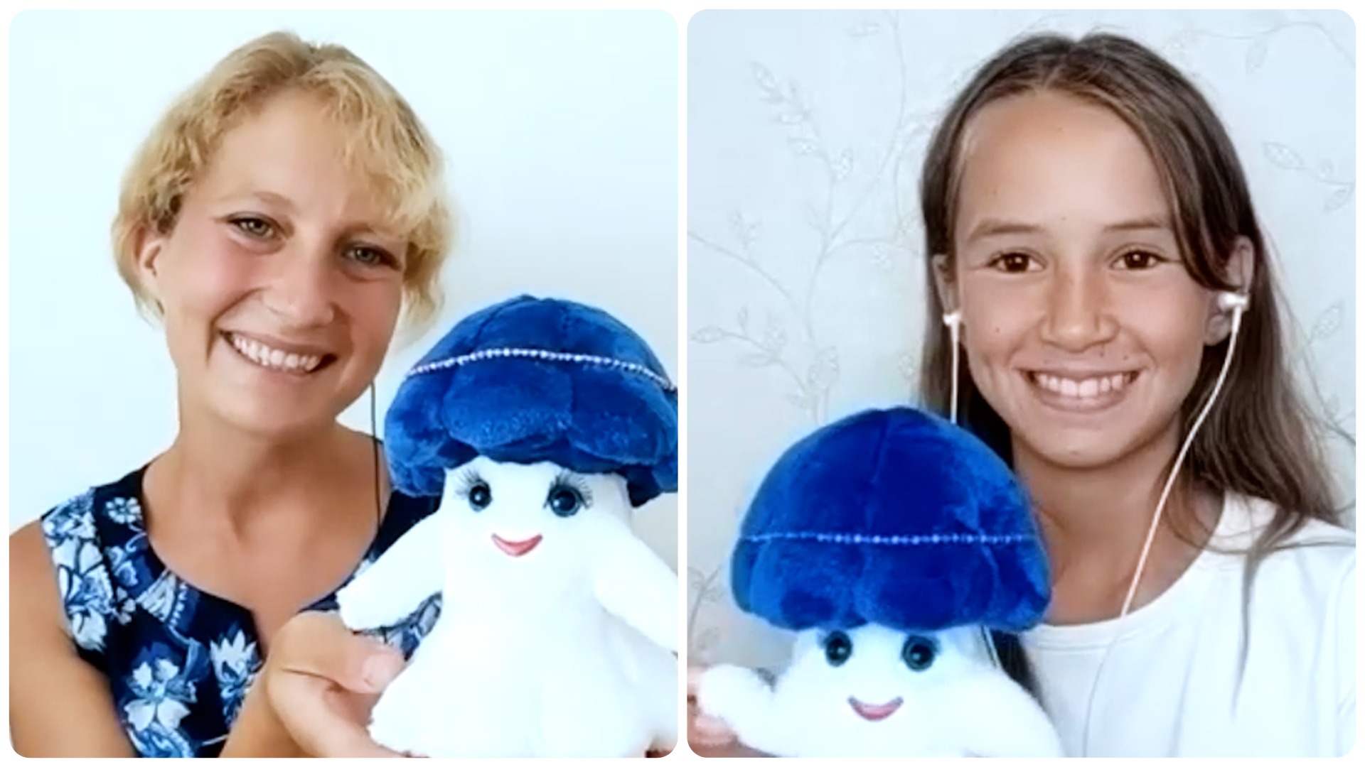 Мягкая игрушка МЕДУЗА С СИНЕЙ ШАПОЧКОЙ. Общение на встрече покупателей.