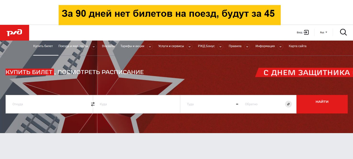За 90 дней нет билетов на многие поезда РЖД, сокращена глубина продаж билетов до 45 суток