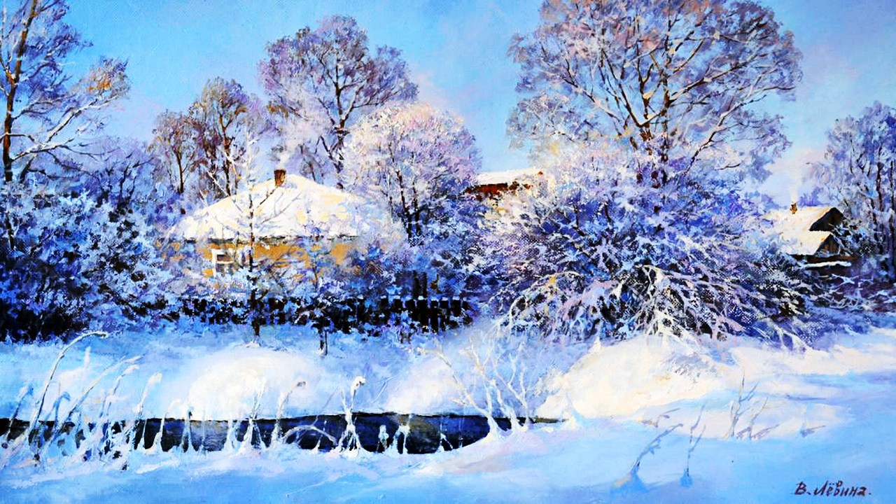Пришла красавица зима. Художник Виктория Лёвина Виктория Валерьевна Левина родилась в 1973 году в г. Волгограде. Окончила Пензенское художественное училище им. К.А. Савицкого ( отделение живописи ) в 1996 году. Московский гуманитарно-экономический институт (отделение дизайна ) в 2012 году. Член Международного художественного фонда, член Федерации Профессиональных художников. Виктория, современный мастер пейзажной живописи, относится к числу художников, для которых изображение природы - смысл творчества. Это один из наиболее эмоциональных жанров искусства. Им нельзя овладеть без искренней любви художника к природе. Это особая категория художников, умеющих в пейзаже наиболее полно и глубоко выразить свои чувства, свои мысли, свое мироощущение. Награждена золотой медалью жюри в категории «Живопись» на конкурсе в Vittel, Франция. Входит в Европейский каталог признанных художников, издаваемый во Франции. Отмечена многими дипломами, грамотами и благодарственными письмами различных общественных организаций в России и за рубежом. Участница множества российских и международных выставок (в Люксембурге, Франции, Германии, США, Китае, Австрии, Словакии, Дании, Италии, Голландии и др.), в том числе более пятидесяти персональных. Источник:https://www.liveinternet.ru/users/ertata/post293875984/