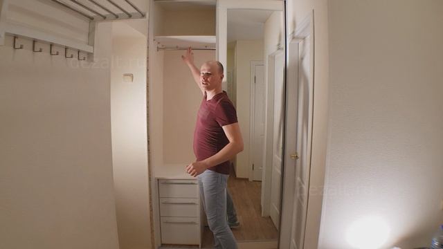 Этот шкаф мы сделали в прихожую. Стены были очень неровные, пришлось исправлять наклон планкой.