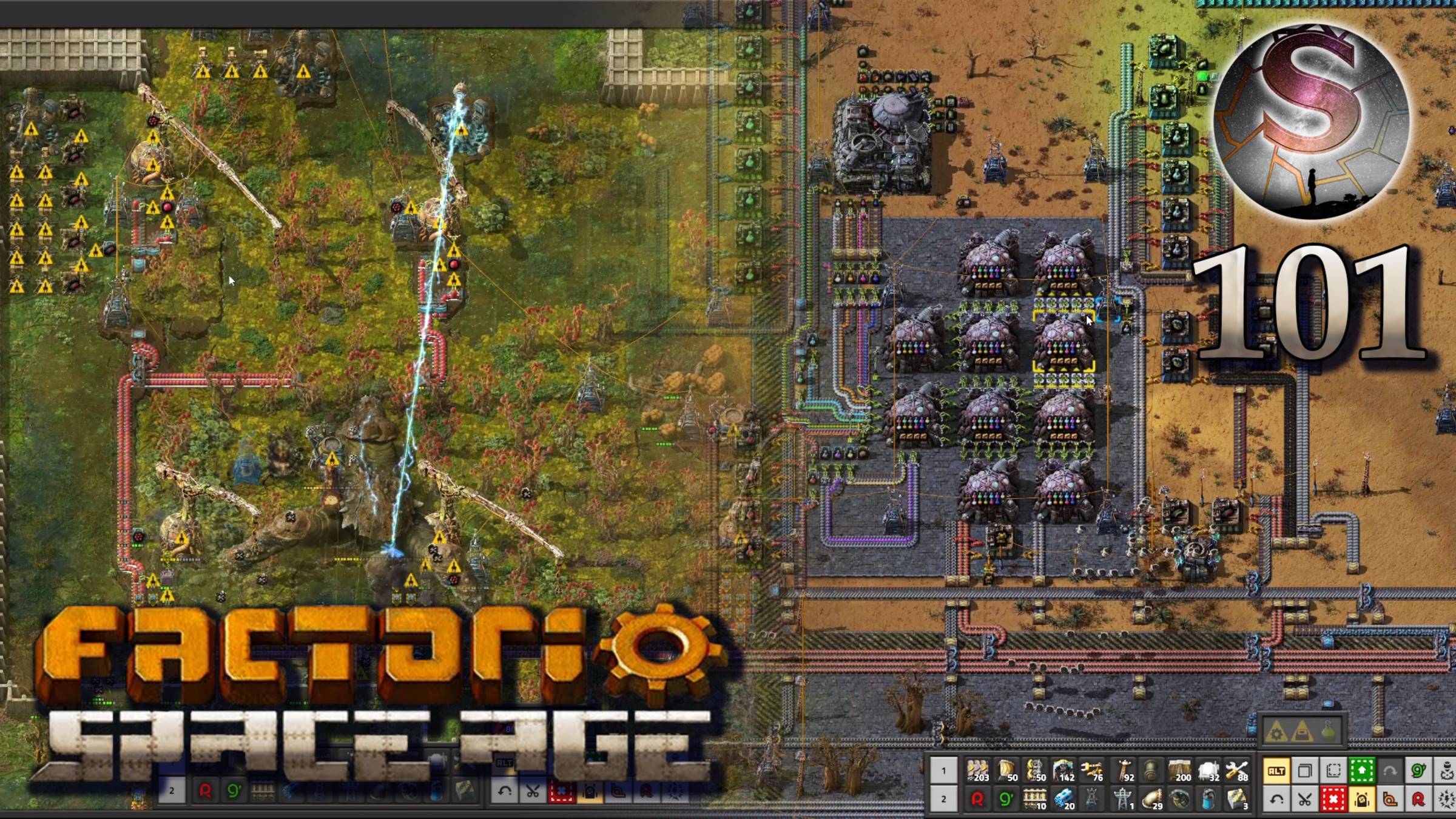 Factorio: Space Age - Эпизод № 101 Снова узким местом становится Глеба - посетил эту планету два раза в этой серии, увеличил скорость производства ракет, а затем переработку юмако. Залетел на минутку на Аквило, починил и обратно. Расширил научную базу на Наувисе, сделал два апгрейда и начал разработку прометиевого исследовательского пакета! 04:35 — Пятиног топчет мои поля 08:29 — Исследовательская база 14:33 — Чиним разрушения на Глебе 25:14 — Нужны детали ракеты - сталь 46:54 — Разглядываю квантовый процессор 51:03 — Забежал на Аквило 01:07:58 — Прокладываю запутанный маршрут 01:14:55 — Ускоряю переработку юмако 01:28:51 — Мысли в завершение ___________________________________________ Хештэги: #Факторио #Factorio #SpaceAge ВЗАИМНОЙ ПОДПИСКОЙ НЕ ЗАНИМАЮСЬ Мое сообщество ВК: https://vk.com/club227520262 Дзен: https://dzen.ru/shagon Ютуб: https://www.youtube.com/@Shagon-Games-and-Music