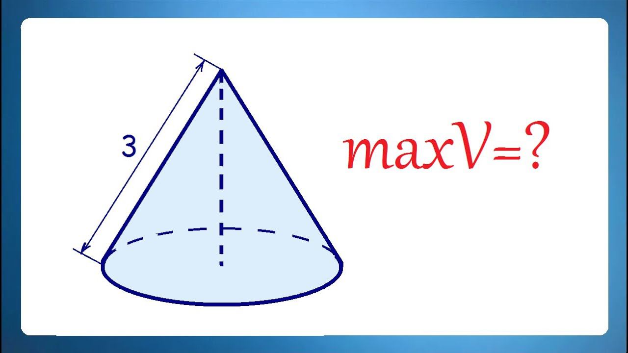 Найдите наибольший объём конуса, образующая которого равна 3. Предыдущее видео: https://youtu.be/hDduLwPDfQQ Valery Volkov https://www.youtube.com/valeryvolkov Наш семейный канал: https://www.youtube.com/@arinablog Почта: uroki64@mail.ru