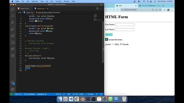 In this video you will learn CSS pseudo selectors with HTML form elements :focus :enabled :disabled :checked :default :valid :invalid :in-range :out-of-range :required :optional :read-only :read-write Happy Learning.
