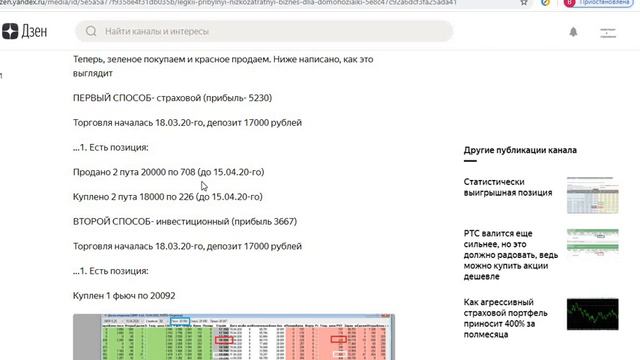 ОБЩАЯ ИНФОРМАЦИЯ: Самые последние изменения по этому руководству будут в самом последнем выпущенном видео этого плейлиста- Но перед всем этим прочитайте эту статью ниже… https://zen.yandex.ru/media/id/5e5a5a77f9358e4f31db035b/sberbank-padaet-izza-koronovirusa-5e7395c08cd2837a65972579?from=editor А тут все статьи. https://zen.yandex.ru/profile/editor/id/5e5a5a77f9358e4f31db035b Перечитатйте все статьи, которые вышли позже 18.03.29-го, чтобы было понятно видео.. После прочтения всех статей, выпущенных после 18 марта 2020-го года на дзене- посмотрите это видео https://www.youtube.com/watch?v=ExmcdHKy3ok&list=PLC1-T8QPDnKIfBCq0zxz3csvila8UAqMd&index=18 https://www.youtube.com/watch?v=3qXJG0oln_c&list=PLC1-T8QPDnKIfBCq0zxz3csvila8UAqMd&index=15&t=32s https://www.youtube.com/watch?v=k8sg3Xjz9m4&list=PLC1-T8QPDnKIfBCq0zxz3csvila8UAqMd&index=16&t=46s https://www.youtube.com/watch?v=ngeBMBoYVHA&list=PLC1-T8QPDnKIfBCq0zxz3csvila8UAqMd&index=9 https://www.youtube.com/watch?v=wo8al0Hf1jE&list=PLC1-T8QPDnKIfBCq0zxz3csvila8UAqMd&index=7 https://www.youtube.com/watch?v=EVYD3iWoSUA&list=PLC1-T8QPDnKIfBCq0zxz3csvila8UAqMd&index=8 Страховки продаем вначале на опшнру… ссылка http://www.option.ru/ выбираем- сервисы (это слева сверху), затем- анализ опционов и далее, как в первом видео Продали месячные опционы, максимум. Лучше, если срок будет самый ближайший. Если цена фьючерса растет на 1000 рублей после нашей продажи, то покупаем наши две проданные страховки. Затем продаем новые две страховки на самый ближайший срок. Тренируемся вначале на опшнру, а затем, после 2 месяцев тренировок- можно перейти к демо-торговле в терминале квик… Регистрируемся тут на демо https://arqatech.com/ru/support/demo/ и скачиваем дистрибутив после того, как придет письмо на имейл Все зависит от суммы, которая у вас есть. Если только 17000 рублей, то продаем одну страховку всегда. Если 34000, то продаем вначале одну страховку. Если цена фьючерса упала на 20%, то продаем еще одну страховку, которая страхует ту цену, которая близка к текущей цене фьючерса. Затем, слева вверху терминала: “создать окно- таблица” и “создать окно- таблица”“ Это два окна нужны, чтобы видеть, какие у вас есть заявки. Красные- это активные, синие- отработавшие, черные- снятые вами. Затем: “создать окно- ограничение по клиентским счетам”... Тут в графе “предыд. лимит” видно сколько у вас денег было, а в “лимит откр. п...”- то, сколько денег у вас сейчас. Затем, “создать окно- позиции по клиентским счетам (фьючерсы)- тут видно, какие у вас позиции открыты. Расположите окна так, чтобы они все были видно и не закрывали друг друга. Все окна с заявками, лимитами и прочим надо расположить в одном оглавлении, а доску опционов в другом оглавлении. Чтобы создать новое оглавление- посмотрите в этом видео https://www.youtube.com/watch?v=wo8al0Hf1jE&list=PLC1-T8QPDnKIfBCq0zxz3csvila8UAqMd&index=7 и там есть надписи внизу терминала. “”ришка””, “опциончики” и тд… у вас названия могут быть другие. Надо в вашем демо терминале по одному из этих названий кликнуть правой кнопкой мыши и выйдет окно и выбрать “добавить”… появится новое оглавление и в нем вызвать доску опционов. А как открывать доску опционов и как вводить заявку на продажу и покупку- я рассказывал в этом видео https://www.youtube.com/watch?v=wo8al0Hf1jE&list=PLC1-T8QPDnKIfBCq0zxz3csvila8UAqMd&index=7 Последние актуальные стратегии для новичков именно на Дзене и поэтому следите за ними. Мне проще писать, чем снимать видео... НОВИЧКИ, ПРОСМОТРИТЕ ВИДЕО выпущенные позже 18.02.20-го, КОТОРЫЕ НИЖЕ, ЧТОБЫ ПОНЯТЬ О ЧЕМ РЕЧЬ, а потом можете посмотреть все видео на канале \\\\\\\\\\\\\\\\\\\\\\\\\\\\\\\\\\\\\\\\\\\\\\\\\\\\\\\\\\\\\\\\\\\\\\\\\\\\\\\\\\\\\\\\\\\\\\\\\\\\\\\\\\\\\\\\\\\\\\\\\\\\\\\\\\\\\\\\ ДЛЯ ПРОФИ- Ниже для тех, кто решил погрузиться серьезно в изучение И СТАТЬ ПРОФЕССИОНАЛО