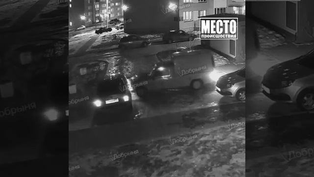 Неуправляемый «пирожок». Странное ДТП во дворе совершил водитель мини-грузовика. Автомобиль ехал прямо, а потом шофер забыл повернуть направо и врезался в припаркованную иномарку.