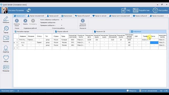Quick Sender - Парсер вк. Парсер групп вконтакте. Программа поиска вк 2020