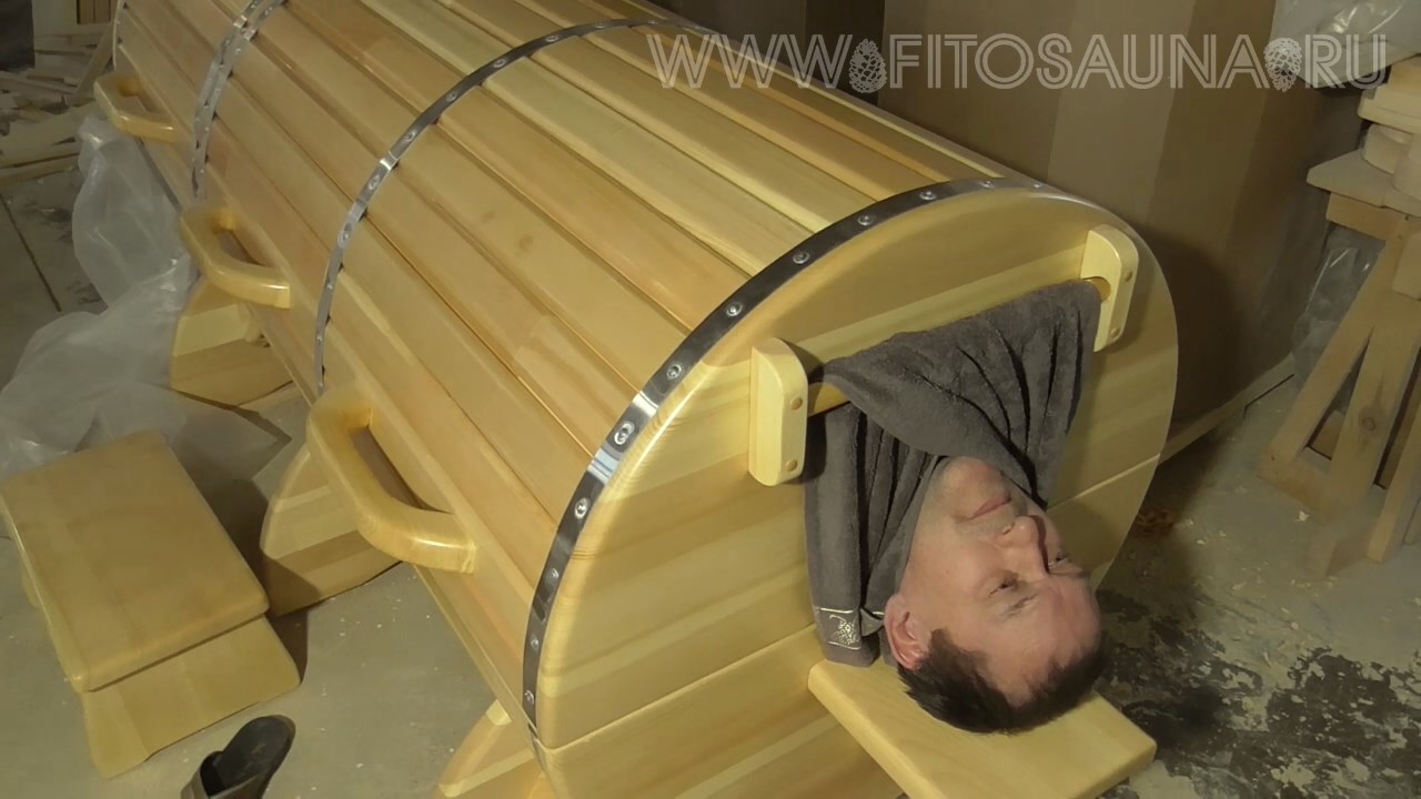 Фиксатор полотенца для горизонтальной кедровой фитобочки. В фитобочке, в которой человек находится в положении сидя или полулежа, верх параллелен земле или под небольшим углом. Полотенце прижимается силой тяжести. Гравитацией. Его можно положить вокруг любой шеи в один слой и оно будет лежать, плотно закрывая горловину фитобочки. С горизонтальной фитобочкой всё немножко сложнее. Люди разные и шеи разные. У одного удобно можно обернуть шею между подбородком и фитобочкой полотенцем. У другого шейка тонкая и нужно создавать целую конструкцию из многих слоев полотенца. Что не является гарантией от того, что от пара полотенце просядет минут через 10 и пар начнет «проскакивать». У третьего шеи нет вообще или короткая. Полотенце придется укладывать прямо на подбородок и тогда не шевели уже головой. Иначе тут же образуются зазоры между полотенцем и головой. Фиксатор полотенца для горизонтальной фитобочки решает эту проблему. Подробности - https://www.fitosauna.ru/blog/fiksator-dlya-polotencza-rezultat-izobretatelskogo-konkursa