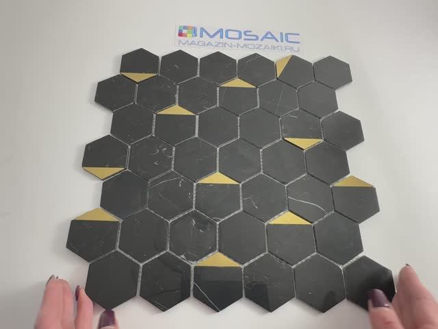 Мозаика HEXAGON NERO MARQUINA GOLD
