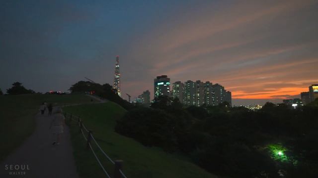 Night Walk in Seoul Olympic Park with Beautiful Sunset