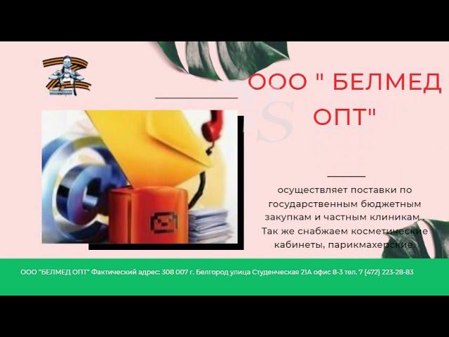 В этом ролике рассказано о Белгород МедТехнике ✅Здесь большой выбор Медицинской Техники, Медицинской мебели и Расходные материалы. В нашем магазине всё максимально просто, в том числе и оплата товаров Физическими лицами и Юридическими Лицами. Для Вашего удобства мы работаем со всеми популярными платёжными системами и сотрудничаем с крупнейшими банками. Оплачивайте покупки в БЕЛМЕД ОПТ надёжно и быстро. Переходите по ссылке и Выбирайте. Доставим оперативно: https://clck.ru/34jqBu Для Юридических Лиц - Выставление счета Для Физических Лиц - Выставление счета для оплаты банковской картой Цены на сайте не являются постоянными и стабильными, и могут отличаться при формировании заказа. https://clck.ru/34jq8H В случае возникновения вопросов, обращайтесь к нашим менеджерам, которые предоставят вам подробную информацию. https://clck.ru/34jq8H ✅ БЕЛМЕД ОПТ доставляет : Доставка курьером: Белгород - бесплатно Белгородская область - по согласованию. По России : Деловые Линии ПЭК Байкал Сервис СДЭК * до терминалов транспортных компаний -бесплатно . Самовывоз: По согласованию Приходите, мы рады Вас видеть