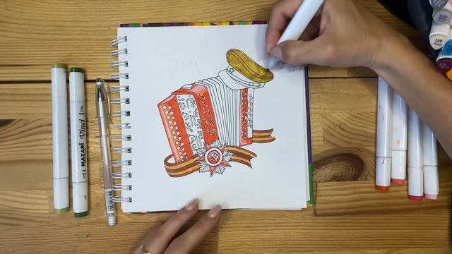 Рисунок скетч маркерами 9 мая День Победы для скетчбука | Срисовка картинки для начинающих