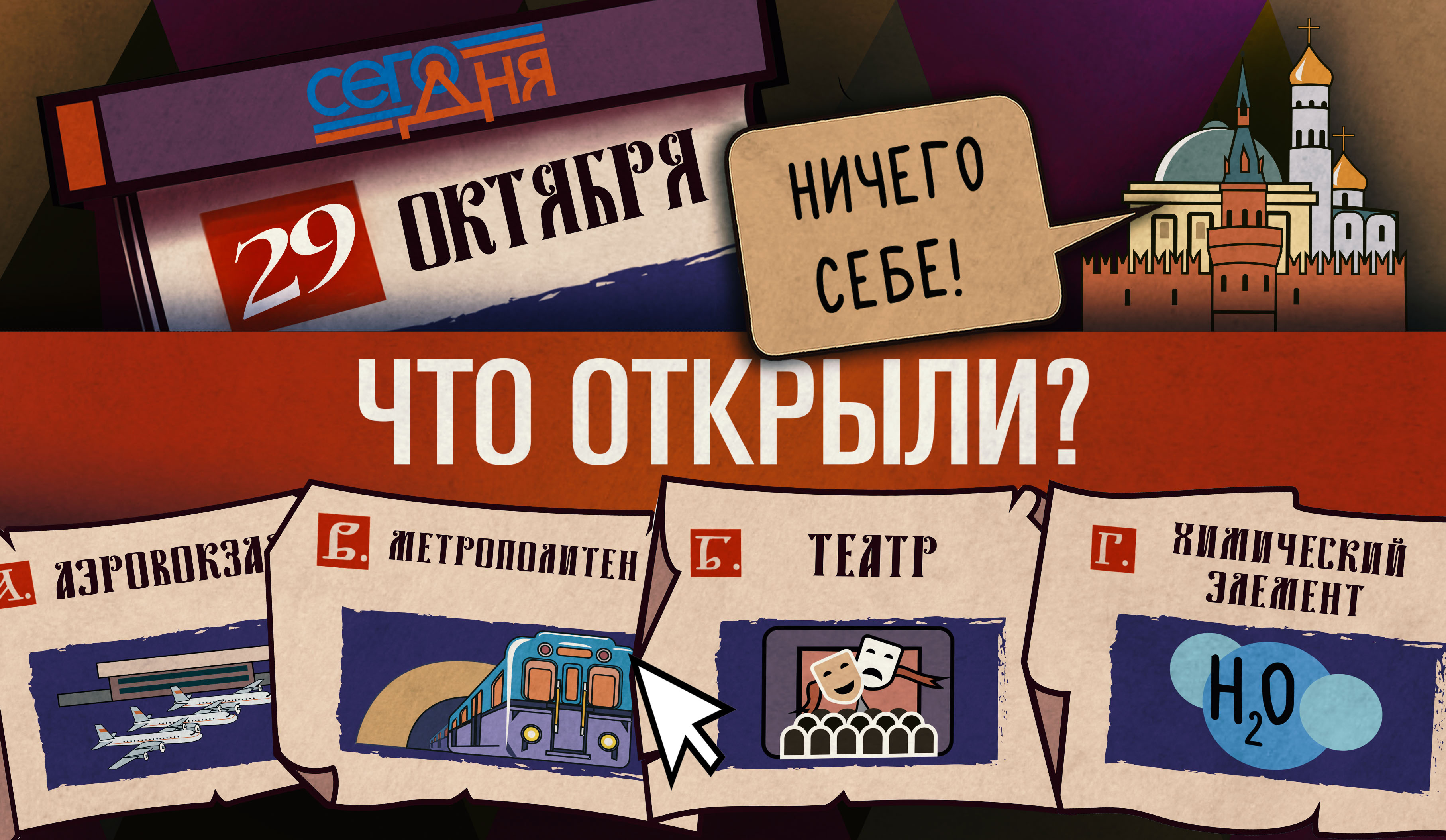 День длинных пёстрых шарфов! Чудесный аксессуар, который разбавит серые будни. Что же открыли в Москве 29 октября 1922 года? Подсказка: это нечто загадочное и важное? Отгадай, что случилось «Сего дня»!