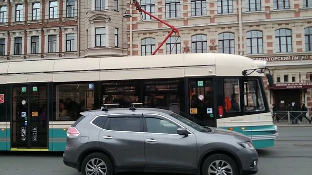 Прокатившись на "Довлатове" я решил снять и отправление этого красивого трамвая от остановки "Станция метро "Василеостровская" "