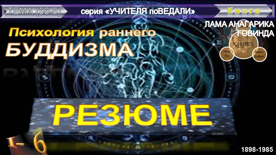 (5) ПСИХОЛОГИЯ РАННЕГО БУДДИЗМА-РЕЗЮМЕ (гл 6. ч.1)-Лама Анагарика(1898-1985)
