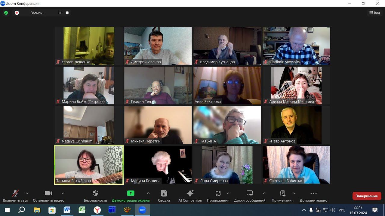 Тема вечера: "Свиданье... Разлука..." 0:00:00 Вступление 0:01:47 Светлана Бабицкая 0:13:01 Владимир Кузнецов 0:19:20 Анна Захарова 0:25:11 Пётр Антонов 0:32:27 Татьяна Ляндрес 0:44:01 Сергей Лещенко 0:47:47 Наталья Гринбаум 0:56:01 Михаил Неретин 0:59:15 Ариэла Марина Меламед 1:08:37 Герман Тен 1:14:27 Марина Белкина (( 1:16:03 истории про мужа )) (( 1:19:43 на тему босановы )) 1:33:53 Елена Щёголева 1:40:09 Марина Бойко 1:45:24 Дмитрий Иванов 1:50:46 "оладушки" 2:09:53 Татьяна Беззубкина 2:16:49 Лариса Смирнова 2:24:18 Светлана Бабицкая 2:28:31 Владимир Кузнецов 2:32:27 Анна Захарова 2:36:43 Татьяна Ляндрес 2:41:04 Сергей Лещенко 2:43:03 Наталья Гринбаум 2:46:38 Ариэла Марина Меламед 2:50:01 Герман Тен 2:54:09 Марина Белкина 3:01:21 Марина Бойко 3:04:36 Лариса Смирнова 3:07:42 Дмитрий Иванов