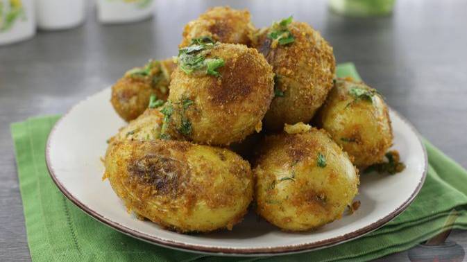 Молодая картошка, запечённая с сухарями, получается хрустящей снаружи и нежной внутри. Вместе с картошкой запекается и чеснок, который затем смешивается со сливочным маслом и зеленью. Эта ароматная заправка прекрасно дополняет вкус картофеля, делая блюдо особенно аппетитным. #КарошкаЗапечённая #КартошкаВДуховке