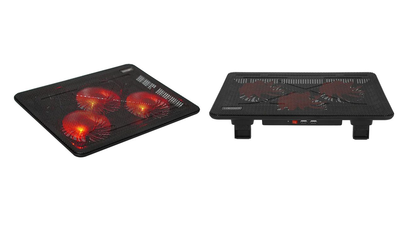 Вашему вниманию предлагается охлаждающая подставка с тремя встроенными вентиляторами для ноутбуков с диагональю экрана до 17 дюймов. Аксессуар имеет встроенную подсветку красного цвета, два USB разъёма, кнопку включения и выключения - https://recdvr.ru/product/ohlazhdajushhaja-podstavka-pod-noutbuk-s-jekranom-do-17-djujmov-3-kulera/ Один из USB портов используется для питания самой подставки от ноутбука через кабель длиной 60 см. Для дополнительного удобства имеются складные ножки.
