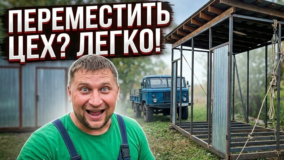 Двигаем хозблок грузовиком Газ-66.