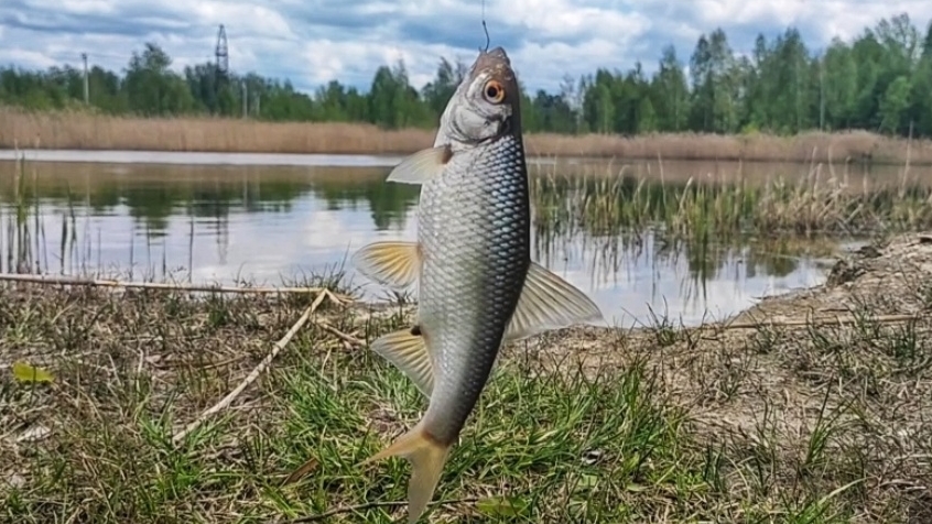 Раздача плотвы на карьере.
