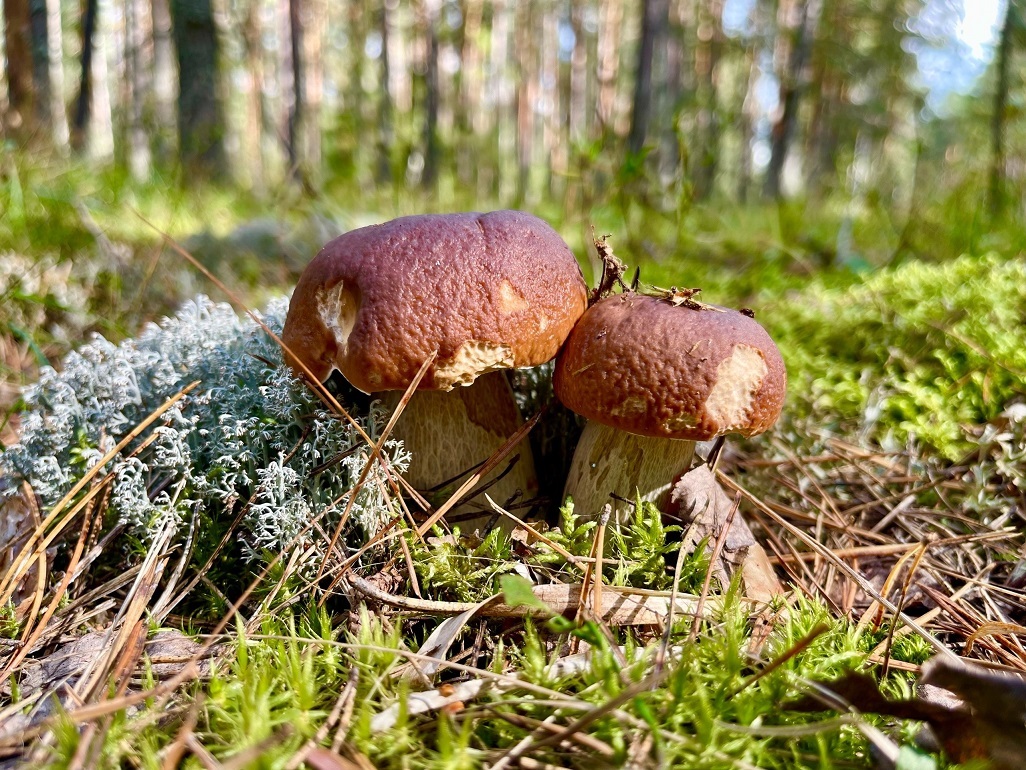 Много грибов в сентябре. Тихая охота на дары леса. Белые грибы и лисички. Грибник набрал грибов для соления