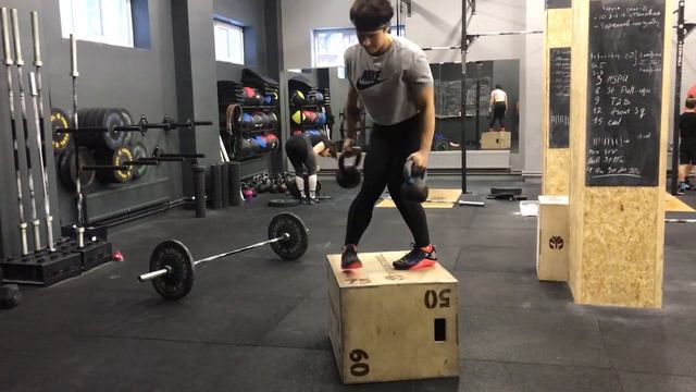 Перешагивание тумбы с 2 гирями