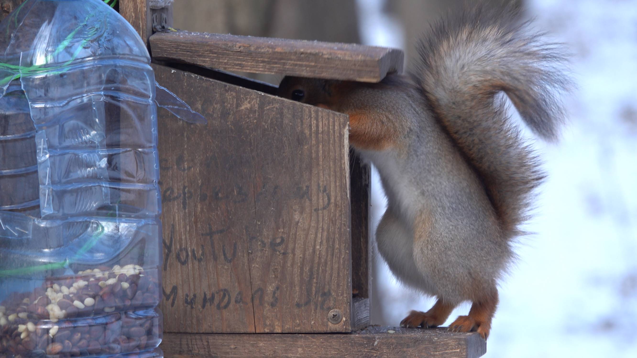 Белки у кормушек. Зарисовка
