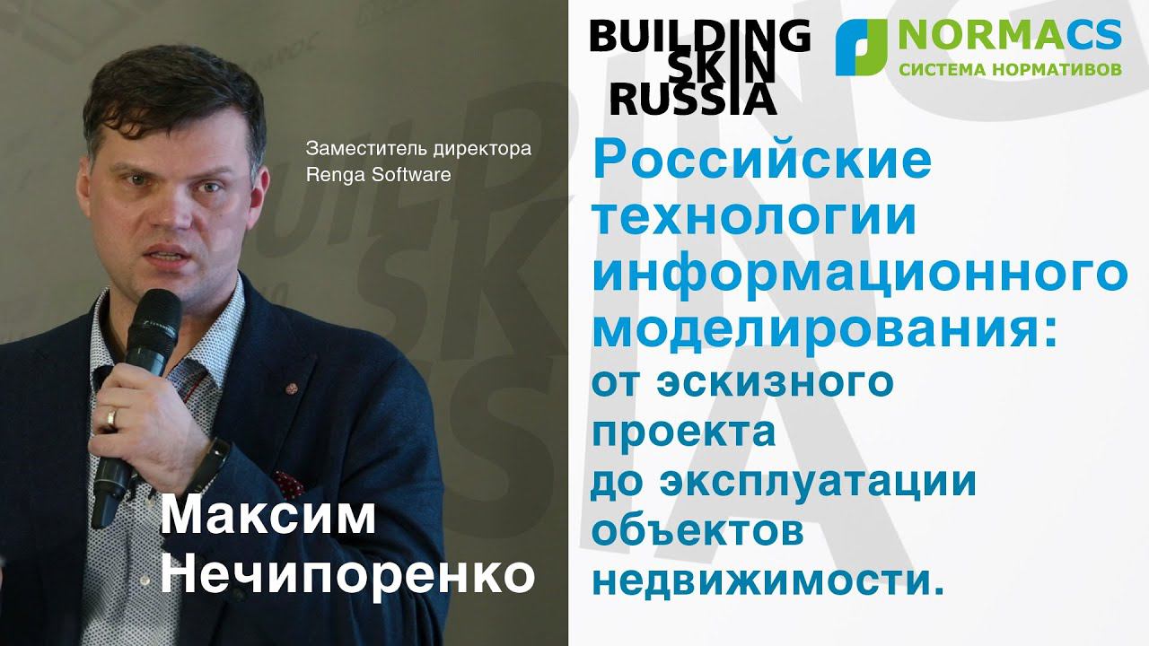 Максим Нечипоренко, заместитель директора Renga Software. Доклад на Building Skin Russia 2019: "Российские технологии информационного моделирования: от эскизного проекта до эксплуатации объектов недвижимости". www.normacs.info