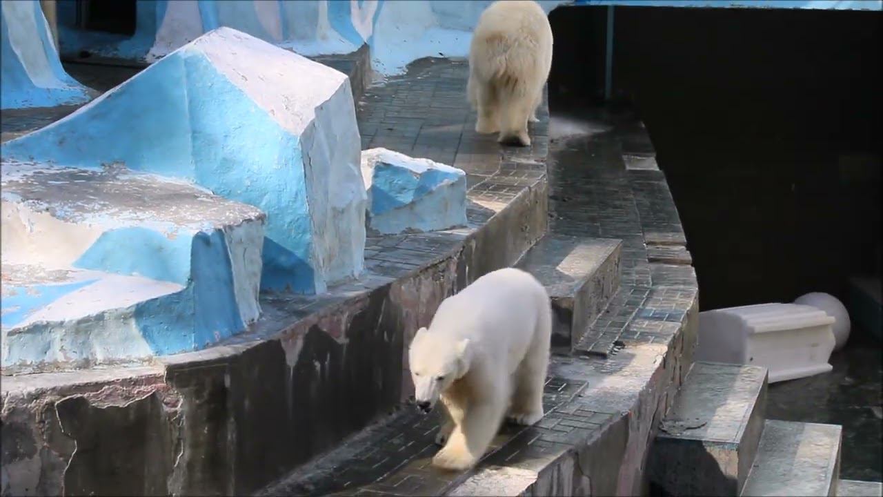 Герда родилась в Москве 20 ноября 2007 года. Её мама Симона, папа Врангель. В Новосибирск переехала 05.08.2008. В 2013 году у Герды и Кая родилась Шилка. В 2015 году она переехала в Японию. В 2015 году родился Ростик. 6 декабря 2018 года он переехал в Китай. В 2018 году родились Норди и Шайна. Данная пара молодых медведей находилась вне экспозиции зоопарка, поэтому посетители не могли их видеть. Передача молодых медведей в другой зоопарк не планируется, — ответили на запрос редакции в пресс-центре мэрии Новосибирска. Но Шайна 20 января 2024 года переехала в Ижевский зоопарк. Белые медведи одиночные животные. Как правило, миролюбивы по отношению друг к другу, но между самцами в брачный период случаются стычки. Взрослые самцы могут нападать на медвежат. Гон с марта по июнь. Продолжительность жизни — максимум 25—30 лет; в неволе рекорд долгожительства — 42 года. Вес очень крупных самцов в некоторых частях ареала 700 и даже 800 кг: есть данные о зверях весом до 1000 кг. Обычно вес меньше. Самки всегда не только меньше, но и значительно легче самцов. Так, самцы в восточной Гренландии в состоянии нормальной упитанности весят 400—450 кг, хорошо упитанные — до 500 кг, самки, даже очень сытые, здесь же редко весят больше 350—380 кг, т. е. их вес составляет около 75% веса самцов. Длина тела на 3-й день после рождения 28—32 см, средний вес — около 755 г (650—840 г). На 26-й день длина тела увеличивается незначительно — до 35—38 см, а вес возрастает до 1125—1275 г. В возрасте 60 дней самцы весят около 7 кг, самки — около 6 кг при длине тела у первых 58—60 см, у вторых 54—58 см. В возрасте 4 месяца медвежата достигают веса 22—23 кг, в 6-месячном возрасте при длине около 110 см — 40—43 кг, в 8-месячном — 58—62 кг. Длина тела в возрасте с 6 до 9 месяцев нарастает по 6—7 см в месяц. Во время зимнего сна рост почти прекращается. В зоопарке медведей кормят утром морской рыбой, хлеб с рыбьим жиром внутри, морковь, яблоки, морская капуста, яйцо дают сырое. Медвежат подкармливают молоком из соски. На ужин мясо (говядина, конина, куры или индейка). Летом и осенью арбузы, дыни, ранетки, кабачки, тыквы, огурцы. Когда показательное кормление летом бросают живую рыбу. Медвежата с медведицей находятся до 2-х лет. 16 декабря 2022 года Герда родила 2-х медвежат. И это две девочки! Имена дали 25 июня. Медвежат зовут Стрелка и Белка. Обзор вольеров белых медведей https://www.youtube.com/watch?v=mAt_b7JD0B4&list=PLGvf0V-rAHxkpGKJaWIZIUxRKgKiqV3xZ&index=17&t=0s