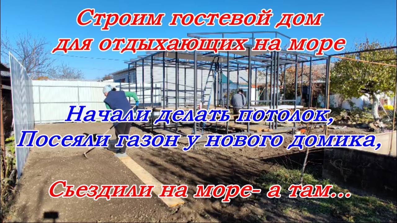 Должанская,Строим гостевой дом у моря, Начали делать потолок, Посеяла клевер, Готовлю розы к зимовке