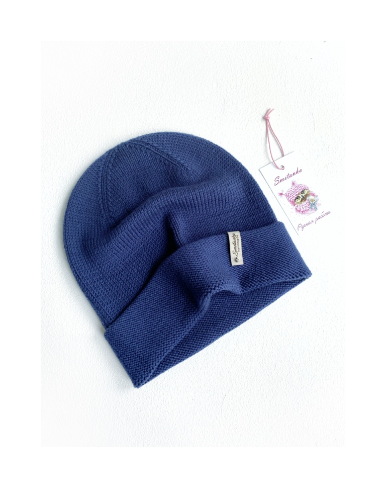 Шапка бини лицевой гладью спицами #bini_smetana