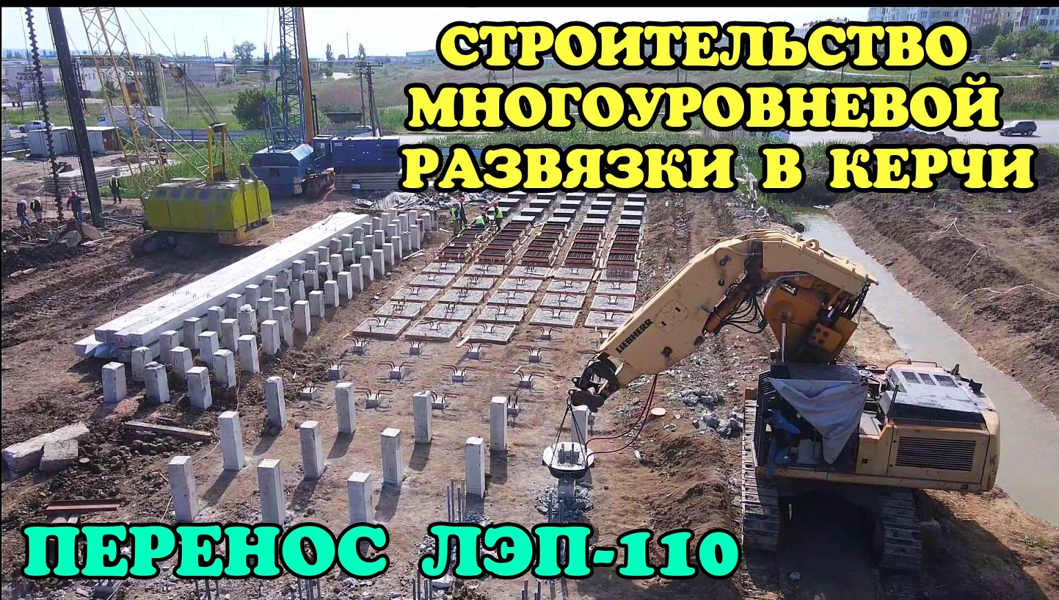 Крым.Многоуровневая развязка в Керчи.Перенос ЛЭП-110 кВ.-лёд тронулся.Строительство опор путепровода