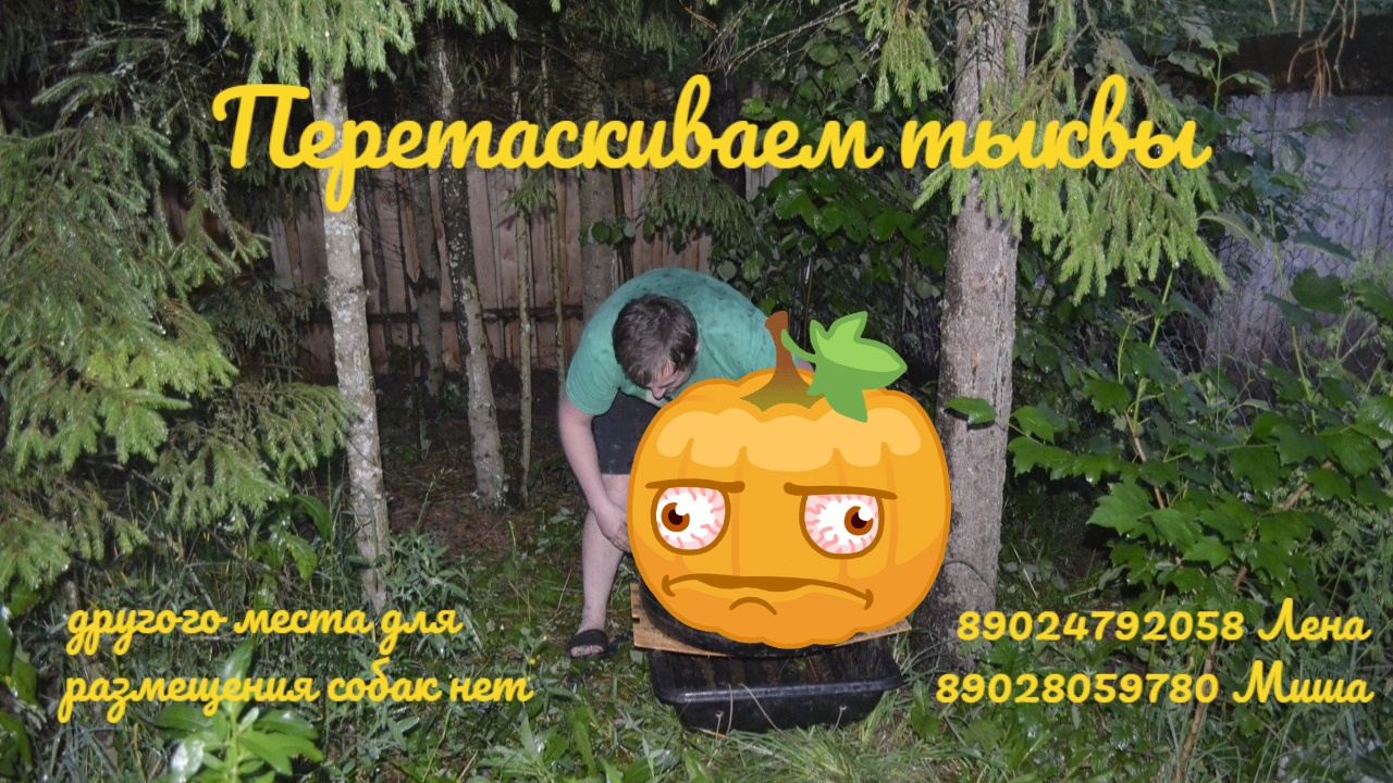 Освобождаем место для собак. Нынче тыквы мы сажали в лесочке на участке, но там для них, как оказалось, слишком сухо и маловато света - в обед тень от деревьев и забора от чего они очень медленно росли и мы решили их перетащить в другое место освободив место для возможности размещения собак. В то время как раз шел дождь и, надеемся, что тыковки хорошо обоснуются в новом месте. А то что они посажены в колеса не должны пострадать от перемещения. Мелкие деревца думаем убрать, но уже взрослые жаль вырубать. В тени деревьев летом благодать - прохлада и, думаем, собакену кого хотим там разместить будет комфортно жить. https://youtu.be/ihGVZPfihlY 89028059780 Миша, 89024792058 Лена